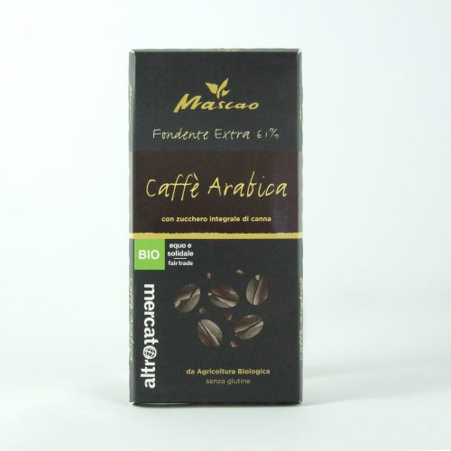 Mascao fondente extra con chicchi di caffè tostato è un cioccolato biologico che propone l'abbinamento perfetto: cioccolato e caffè. Al primo assaggio è il sapore del cacao che emerge, in seguito esce il caffè che persiste grazie alla consistenza dei chicchi.
