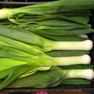 I fiori sono bianchi verdastri, formati da tre pezzi e portati in infiorescenza ad ombrella al termine di uno scapo fiorale che si sviluppa nel secondo anno di vita della pianta.