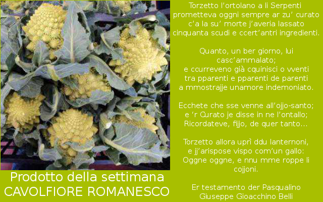 Questo broccolo è conosciuto in tutta la campagna romana da tempo remoto. Nel 1834, Giuseppe Gioacchino Belli, uno dei poeti in romanesco più noti ed importanti insieme al Trilussa, nel suo sonetto “Er Testamento Der Pasqualino” chiama l'ortolano “Torzetto” perché coltivava e vendeva i broccoli romaneschi.