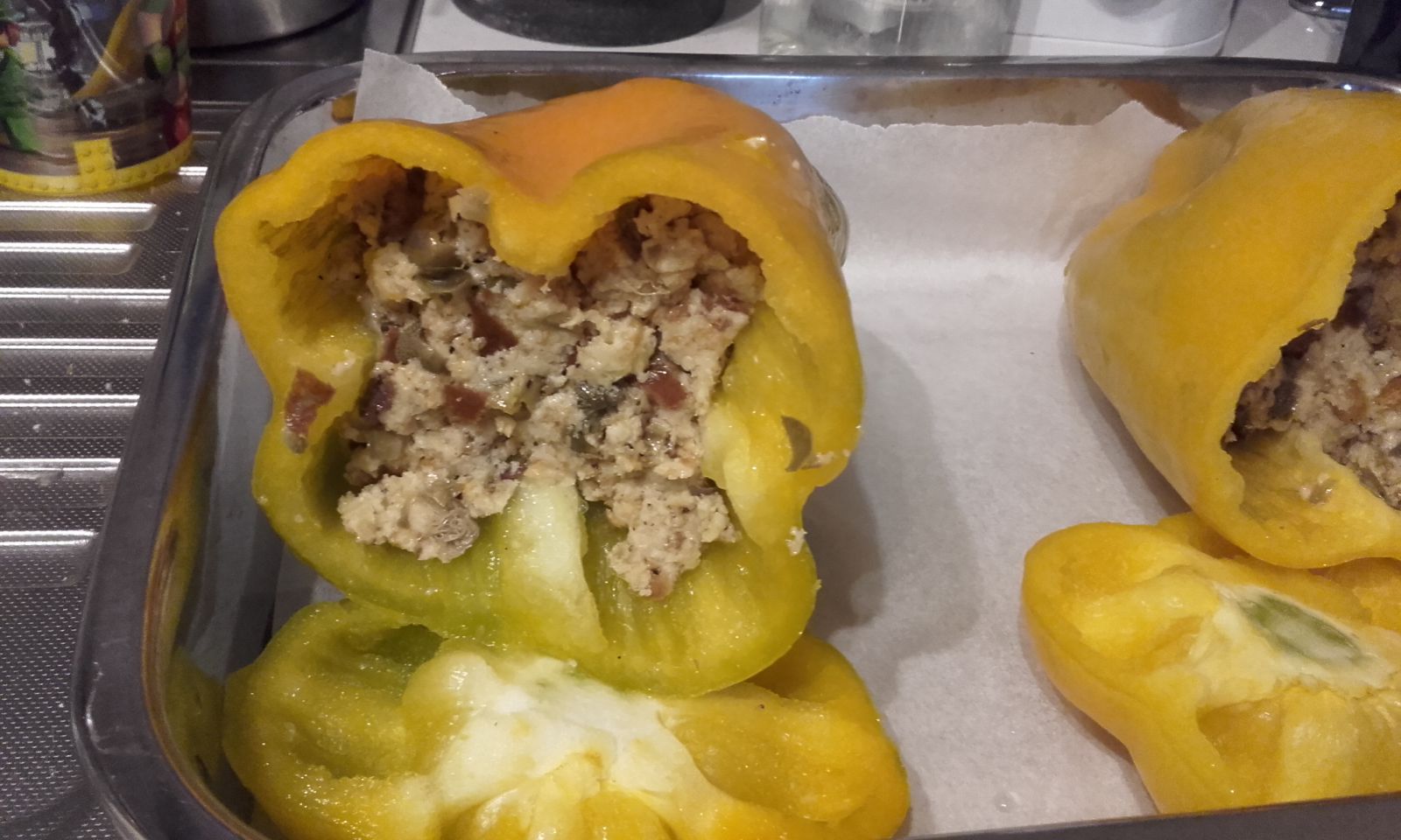 Riempire i peperoni con l'impasto ed infornare a 180 gradi per venti minuti | |